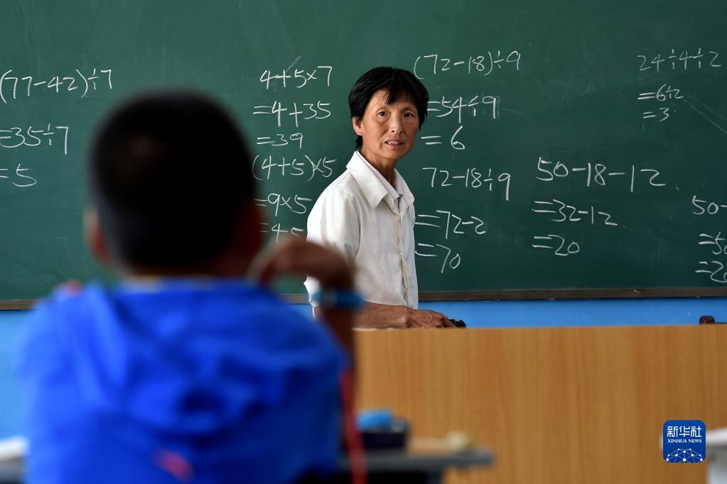 刘桂珍在山西省代县王家会小学上数学课(资料照片)。新华社记者 詹彦 摄