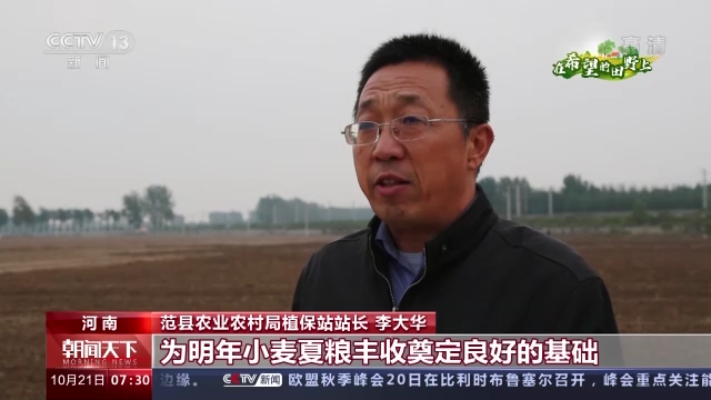 河南省范县农业农村局植保站站长 李大华:精细整地、平衡施肥,适期适量适深播种,培育冬前壮苗,为明年小麦夏粮丰收奠定良好的基础。