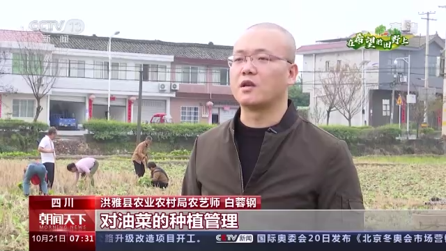 河南省洪雅县农业农村局农艺师 白蓉钢:全县预计在11月份完成8.5万亩的油菜播种,下一步,我们农技人员还将下到田间地头,对油菜的种植管理提供全过程跟踪服务,力争全年油菜产量比去年提升10%以上。