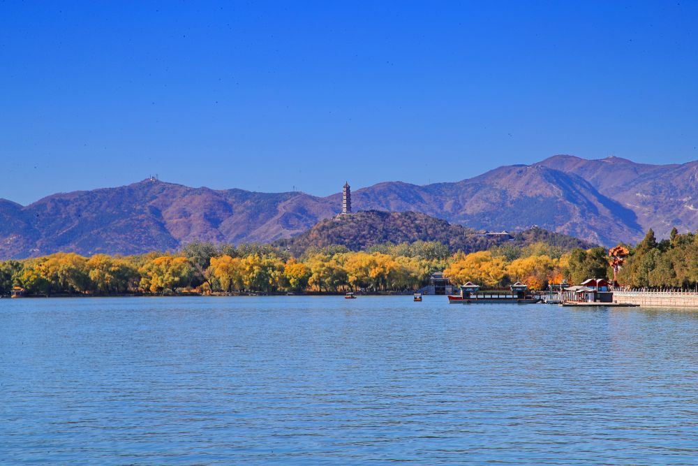 这是11月4日在北京颐和园昆明湖拍摄的秋景。新华社发(刘宪国 摄)