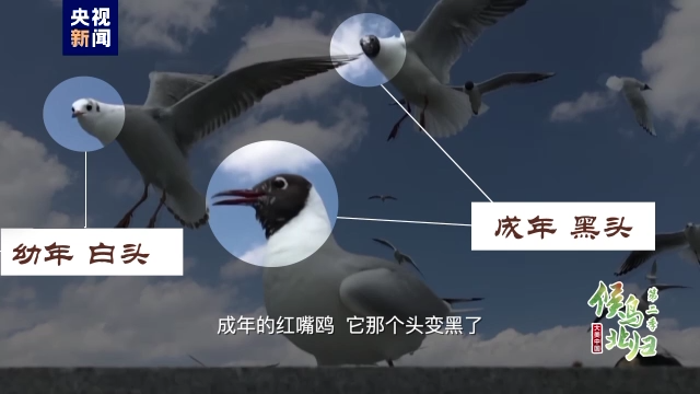 云南大学生态与环境学院讲师 赵雪冰:成年的红嘴鸥的头变黑了,所以它的英文名也叫黑头红嘴鸥。它的头变黑,其实也是它开始繁殖的一个前兆。