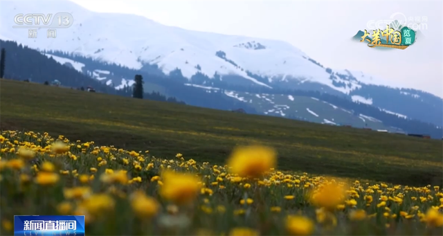 进入六月中旬,新疆伊犁河谷气温逐步上升,地处天山山脉深处、海拔1800米以上的那拉提草原也迎来了一年中最美的季节。此时,天山积雪未融,在雪山的环抱中,这片30多万亩的高山草甸已是碧绿如翠玉。美丽的金莲花迎风开放,好似给夏日草原铺上了一层金色地毯。近年来,那拉提草原实施生态禁牧,草原植被得到极大恢复。(央视网)