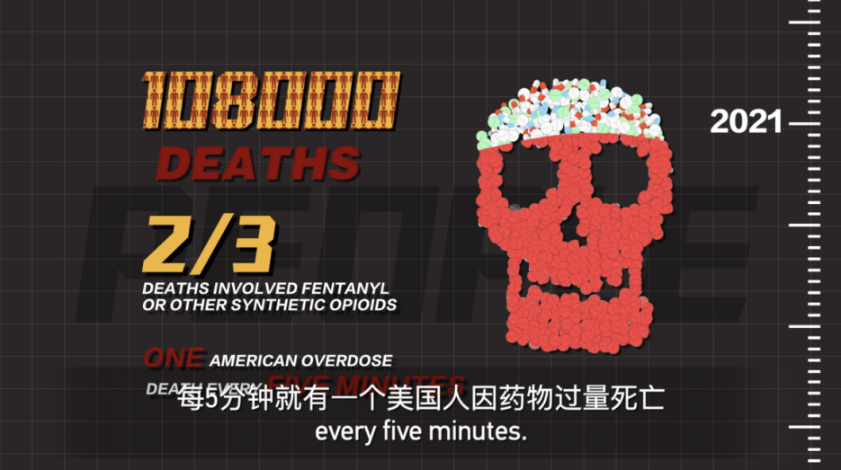 更重要的是,该片采访权威专家,探寻真正的根源。该片摄制组独家采访到美国禁毒署国际行动组前负责人迈克·维吉尔及美国国内研究阿片类药物危机方面的顶尖专家之一安德鲁·克洛尼,他们指出美国的一些制药公司利欲熏心,淡化阿片类止痛药的成瘾风险并鼓吹其好处,从而加剧了多个州的阿片类药物危机。迈克深刻驳斥“来源中国”这一不实指责,并指出美国国内的芬太尼滥用才是主因。