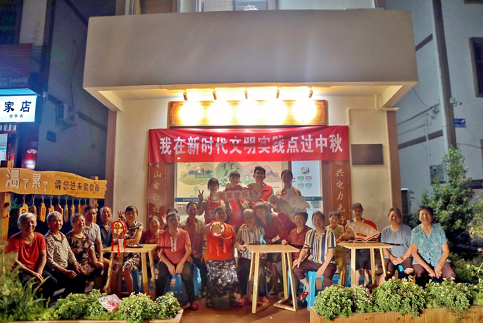 2022年6月15日,将乐县首个“双满意”新时代文明实践点在常口村国家电网志愿服务驿站揭牌。图为2022年9月9日,国网将乐县供电公司志愿者们在常口村“双满意”新时代文明实践点和当地老人们一起做花灯、品中秋。(地方媒体供图)