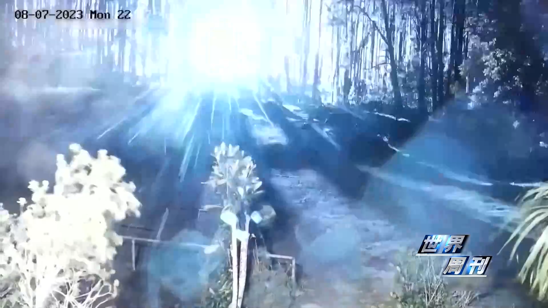 当地时间8月7日22时47分,拉海纳靠近森林的一个监控录像拍下这样一个瞬间。