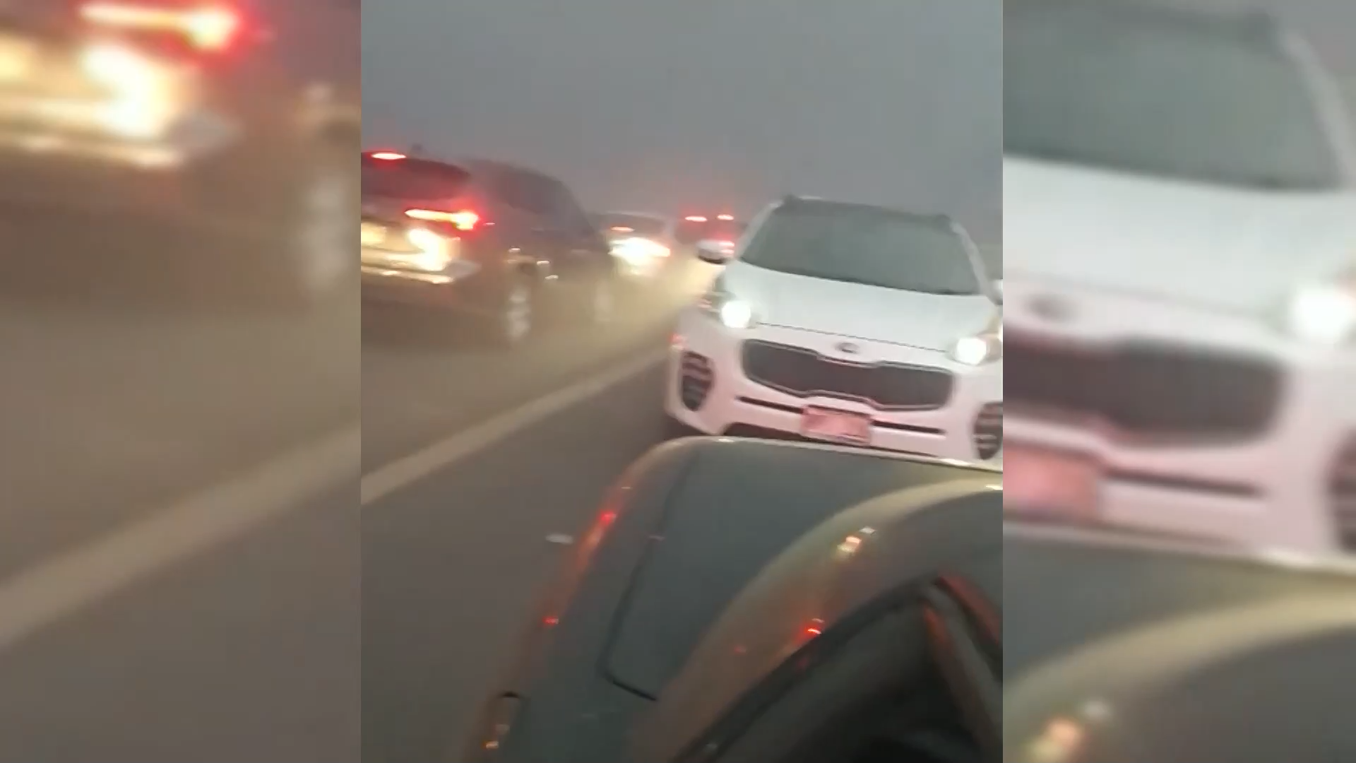 当地居民:现在这里是下午四点,浓烟滚滚,我脸上都是灰。