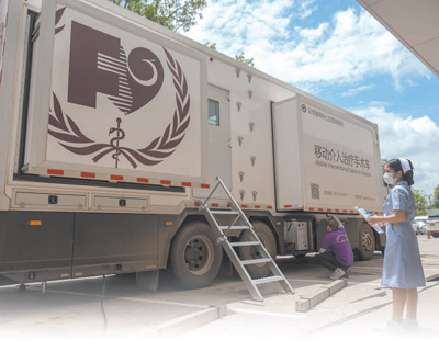 6月20日,玛霍索综合医院外停放的移动介入治疗手术车。
