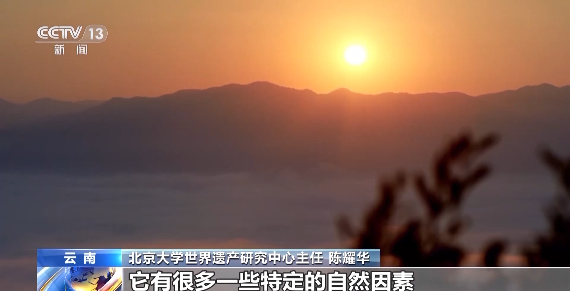 北京大学世界遗产研究中心主任 陈耀华:景迈山是一个茶文化景观,有很多特定的自然因素,比如土壤条件、气候条件。另外它的水分条件,比如我们看到的云雾,景迈山的云海不仅景观非常漂亮,对冬季水分的补充也有非常大的作用。所以这些都是它特定的自然条件。它是相对封闭的一个小的地貌单元,茶的遗传基因,还有文化传统能够比较完整地保留下来。