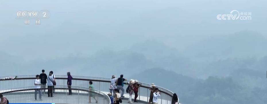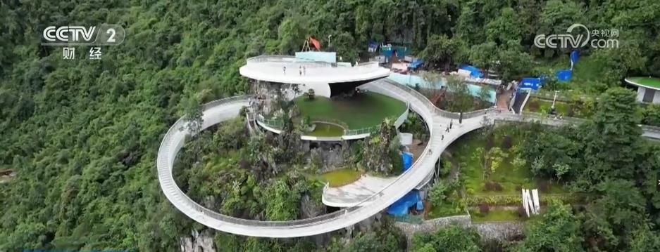 总台记者 杨祉禛:乘坐“飞天魔毯”,采用“懒人”爬山的观景视角,只用了13分钟就来到了“天空之戒”观景平台。这个平台位于中越关口上方,设置了上、下、远、近4个观景视角。站在这里向前眺望,可以获得“一眼跨两国”的体验。再经过前方的玻璃栈道,最后乘坐高空大理石滑道,就能像滑滑梯一样快速到达山脚。
