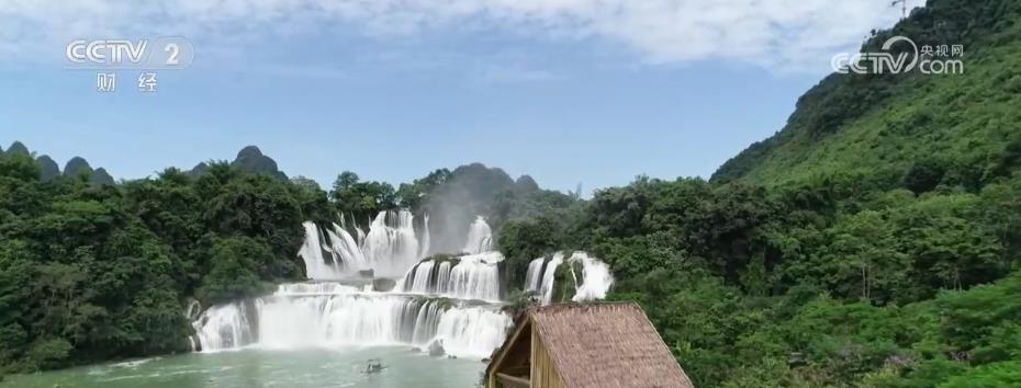 总台记者 杨祉禛:中越德天(板约)瀑布跨境旅游合作区以归春河为界,一侧是德天跨国瀑布,也是亚洲第一大跨国瀑布,它的最大宽度200多米,落差可以达到70多米,另一侧是越南的板约瀑布。稻田咖啡屋是瀑布的最佳观景点,游客在这里不仅能欣赏到三级跌落的瀑布美景,同时也能品尝到正宗的越南咖啡。
