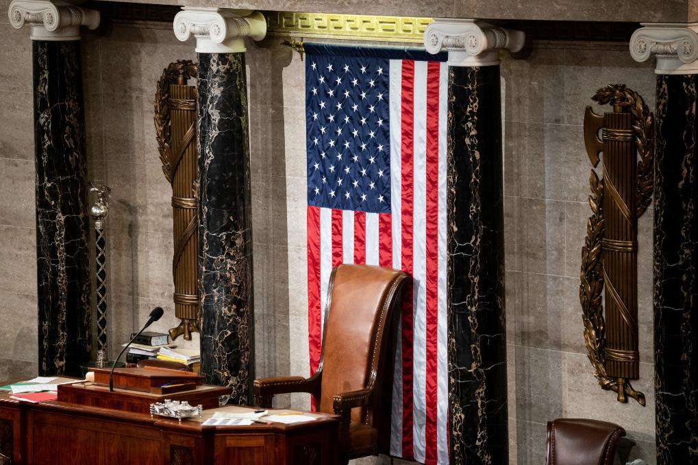 这是1月5日在美国华盛顿国会拍摄的空置的众议院议长座椅。新华社记者刘杰摄