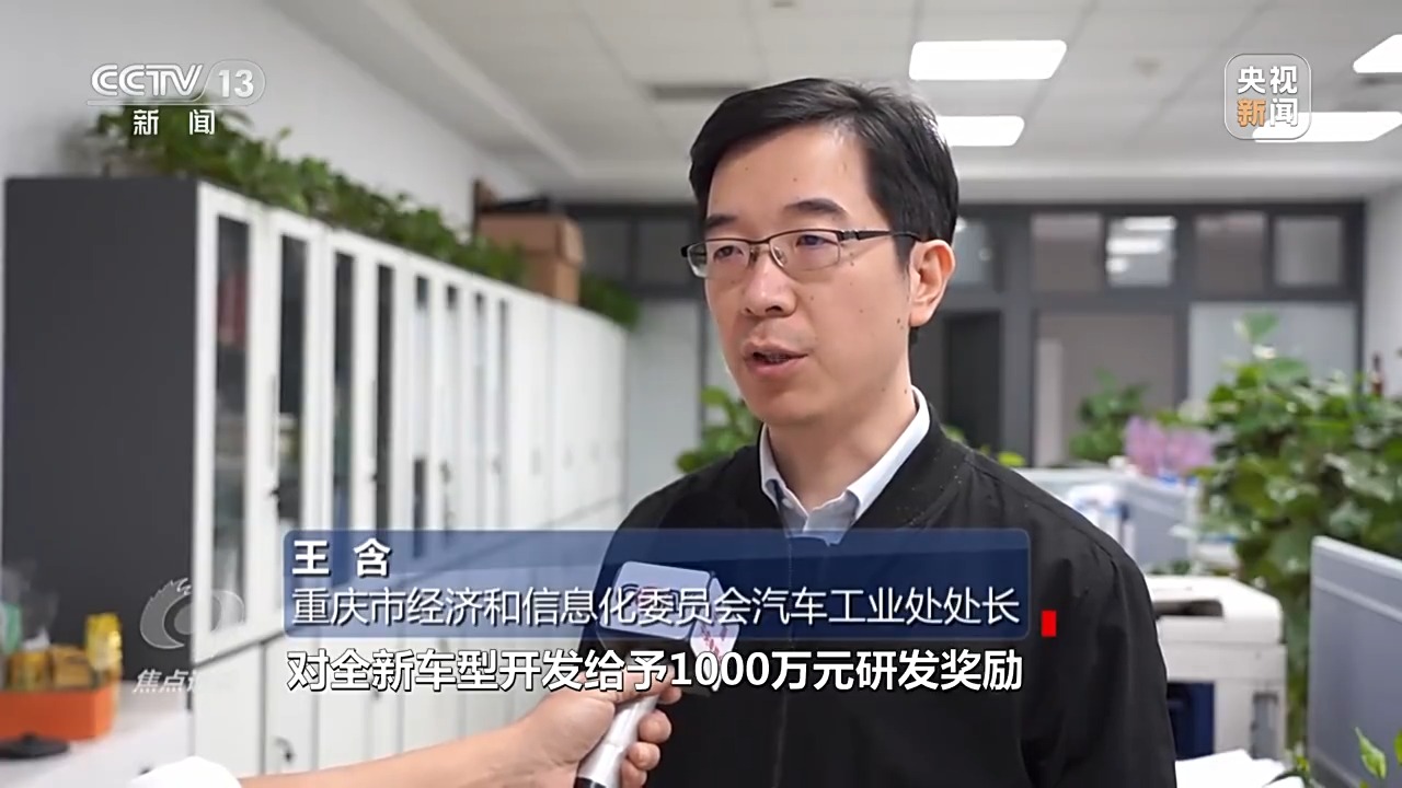 重庆市经济和信息化委员会汽车工业处处长 王含:对全新车型的开发给予1000万元的研发奖励,主要支持企业用于新产品的开发以及关键核心技术的攻关。