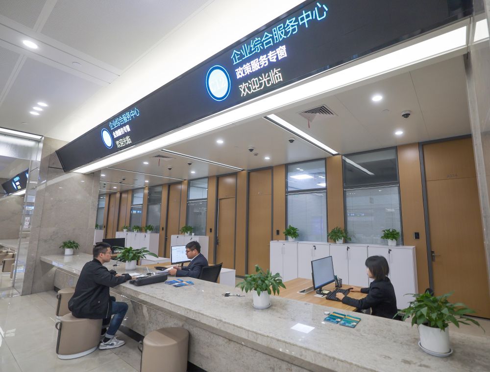 图为企业主在浙江杭州临安区企业综合服务中心的金融服务专窗办理业务。新华社记者徐昱 摄