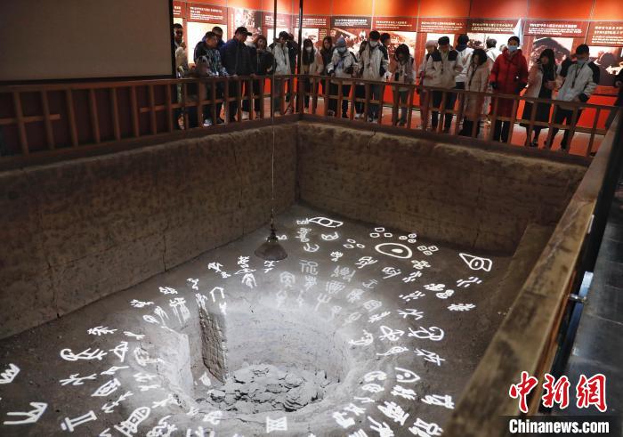 1月17日,台生在河南安阳殷墟遗址参观甲骨窖穴坑。 中新社记者 阚力 摄