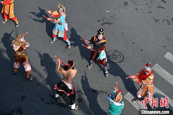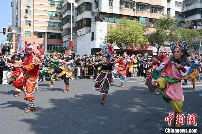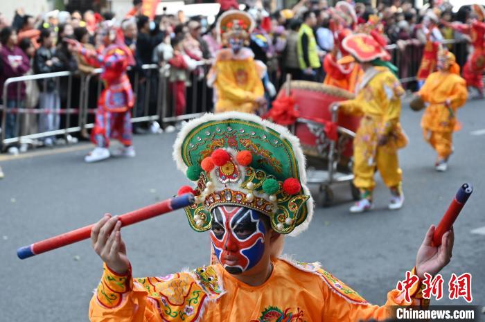 2月14日,正月初五,“中华英歌·舞动汕头”2024年春节英歌舞展演巡游活动在广东省汕头市潮阳区举行。 陈楚红 摄