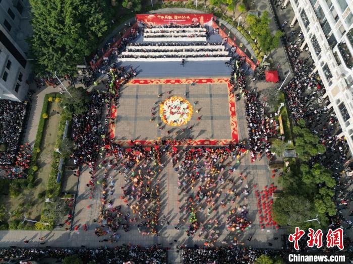 2月14日,正月初五,“中华英歌·舞动汕头”2024年春节英歌舞展演巡游活动在广东省汕头市潮阳区举行。(无人机照片) 陈楚红 摄