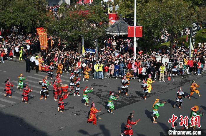 2月14日,正月初五,“中华英歌·舞动汕头”2024年春节英歌舞展演巡游活动在广东省汕头市潮阳区举行。