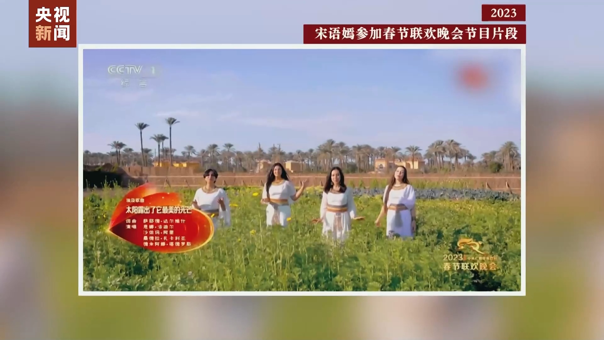 北京语言大学埃及留学生 宋语嫣:我觉得几乎没有一个埃及的人不知道这首歌。我们当时在这个春晚的节目中,我们应该唱《茉莉花》,它是中国的一个经典民歌。我们想找埃及的一首民歌就是配一下,所以我们选择了《太阳露出了它最美的光芒》,它反映的是埃及过去农村的男女爱情故事。