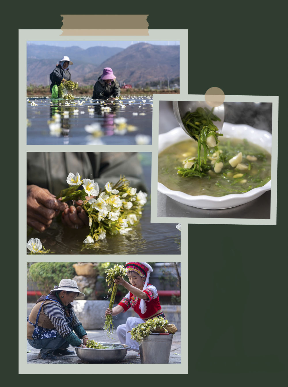 海菜花在大理白族自治州洱源县被采收、制作成美食——海菜芋头汤。 新华社发(罗新才 摄)