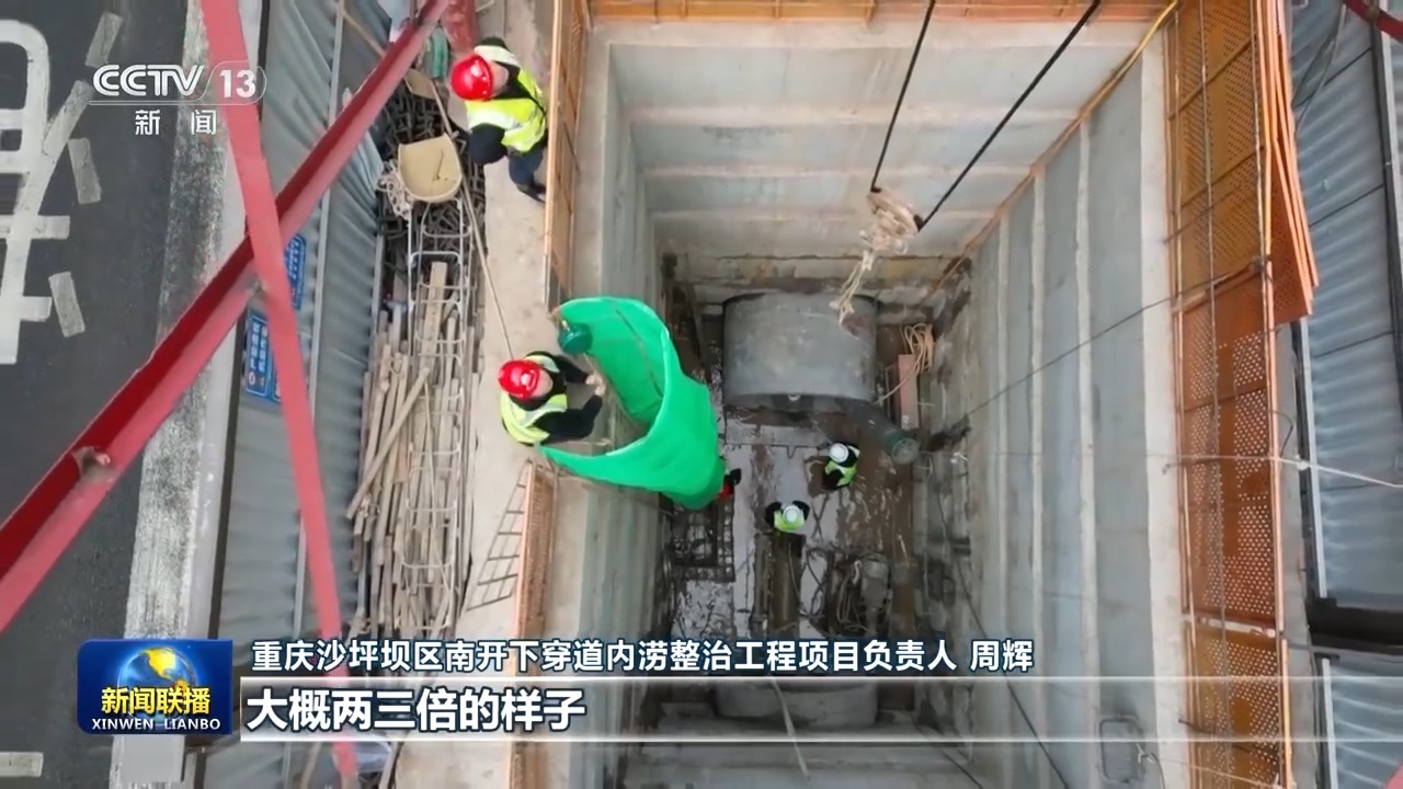 重庆沙坪坝区南开下穿道内涝整治工程项目负责人 周辉:以前管径就是0.6米到0.8米的样子,现在这个管径最大的地方是1.8米,所以说它的过水能力比之前提高了大概两三倍的样子。