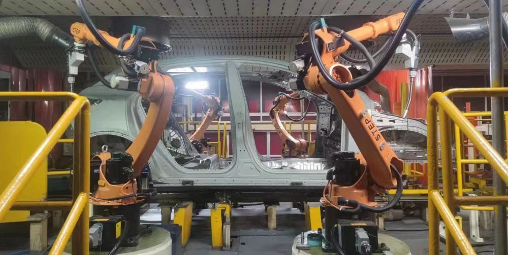 “全长三角造”机器人应用在吉利临海基地白车身焊装产线。(受访者供图)