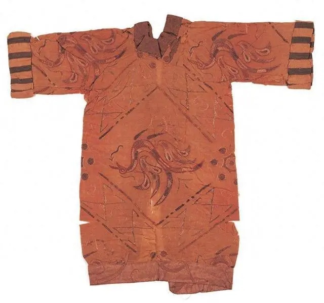 (马山一号楚墓出土战国凤纹绣绢䋺衣)
