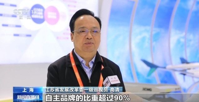 江苏省发展改革委一级巡视员 高清:江苏馆带来了不少“智造江苏”的产品,以品牌建设助力新质生产力发展。近年来,江苏先进制造业品牌“走出去”步伐加快。机器人、新能源、高端装备制造等战略性新兴产业出口品牌快速成长,去年全省出口32.8亿元,自主品牌的比重超过90%。
