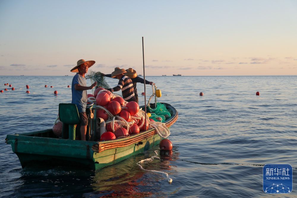 ↑5月15日,中国渔民回收被菲方人员破坏的渔网。新华社记者 赵晨捷 摄