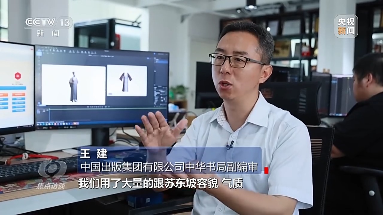 中国出版集团有限公司中华书局副编审 王建:我们用了大量跟苏东坡容貌、气质包括生活场景相关的关键词,进行了数据抓取和提炼,基本上包括了角色小传、时代背景、生活图谱、史料外形和场景及配角信息等,有了学术支撑和史料依据。
