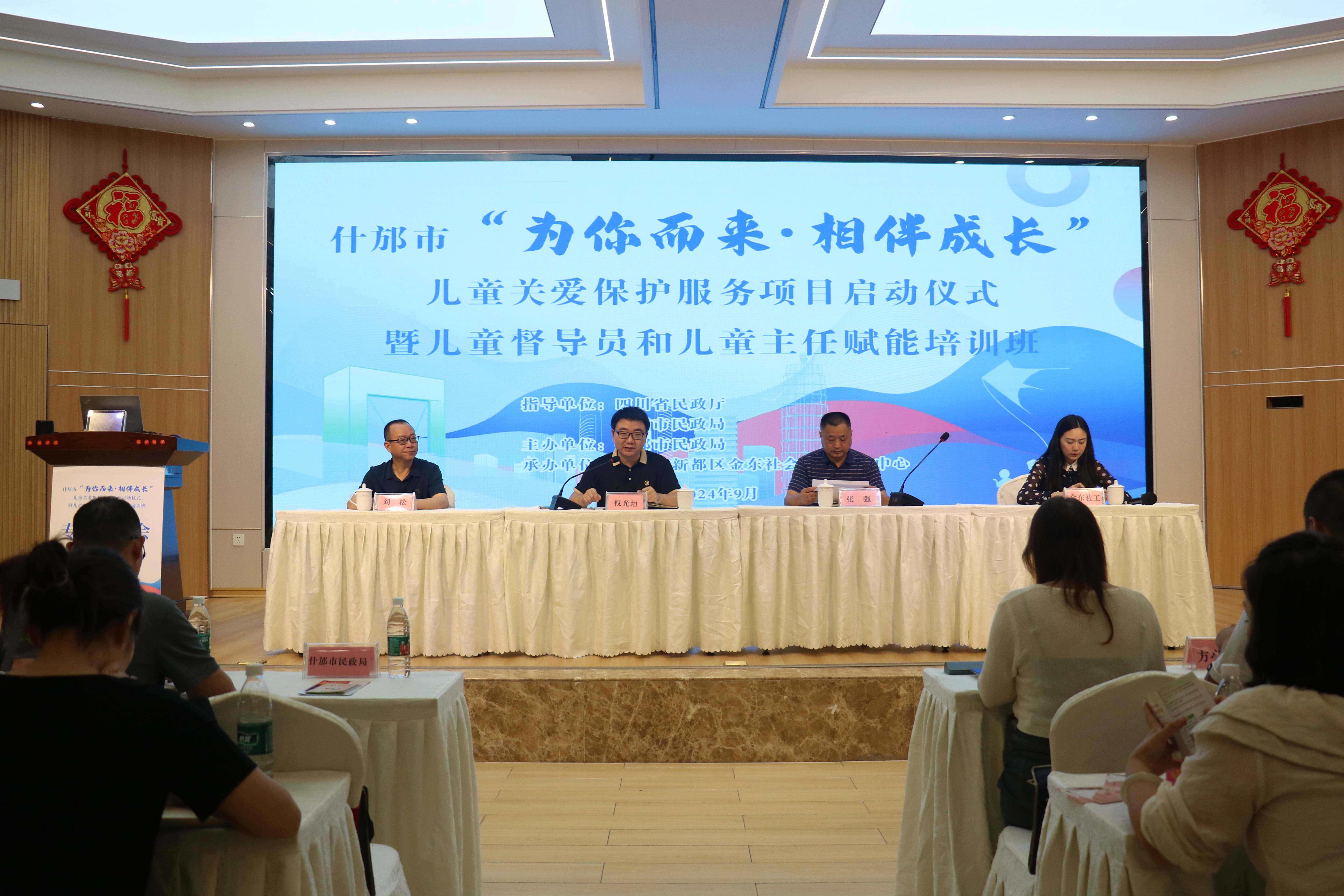 9月29日,以“为你而来·相伴成长”为主题的什邡市儿童关爱保护服务项目启动仪式暨儿童督导员和儿童主任赋能培训,在师古镇师古华庭全龄友好生态智慧康养基地举行。本次活动由四川省民政厅、德阳市民政局指导,什邡市民政局主办,成都市新都区金东社会工作服务中心承办。什邡市民政局副局长权光垣做动员讲话,市民政局社会事务股相关工作人员、各镇(街道)儿童督导员、村(社区)儿童主任及什邡市社区社会组织代表等160余人参加培训。