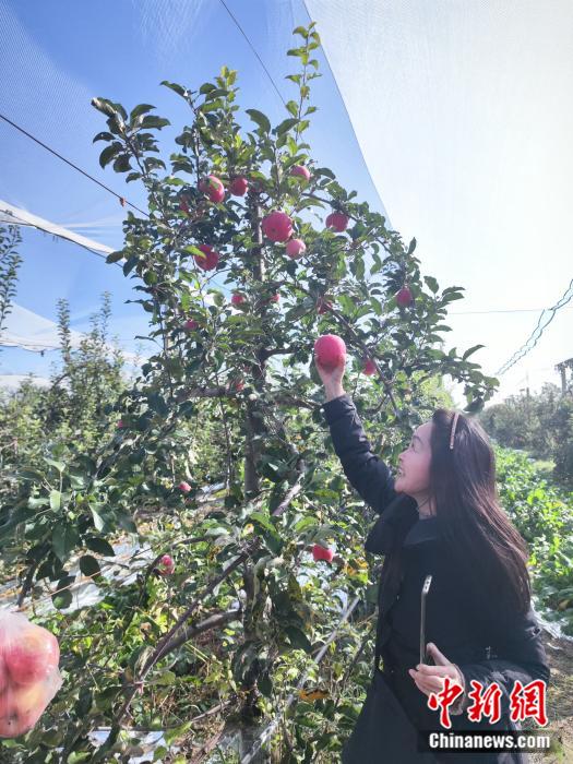 中新网延安10月23日电(刘越)万万没想到,记者们刚下大巴,就被苹果林间的主播赵生生“硬控”了三十秒。