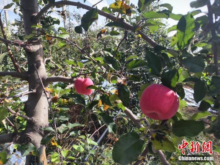沉甸甸的苹果压弯了枝。刘越 摄