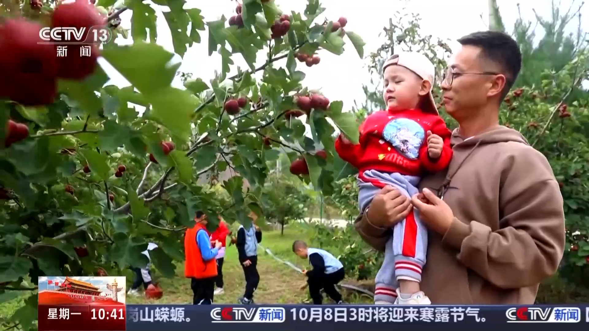 在甘肃灵台县康家沟村,正逢山楂丰收之时,红彤彤的山楂挂满枝头,吸引了不少家庭游客前来观光采摘。康家沟村地处群山怀抱之中,蒲河穿境而过,山水秀丽,风光旖旎,国庆期间成为众多游客选择的好去处。