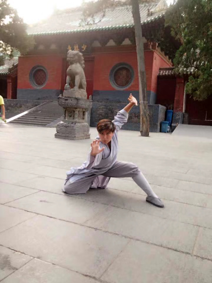 地里娜尔在河南少林塔沟武校学习期间,在少林寺门口留影。受访者供图