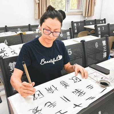 北京语言大学应用中文学院墨西哥籍学生欧善愉练习写毛笔字。