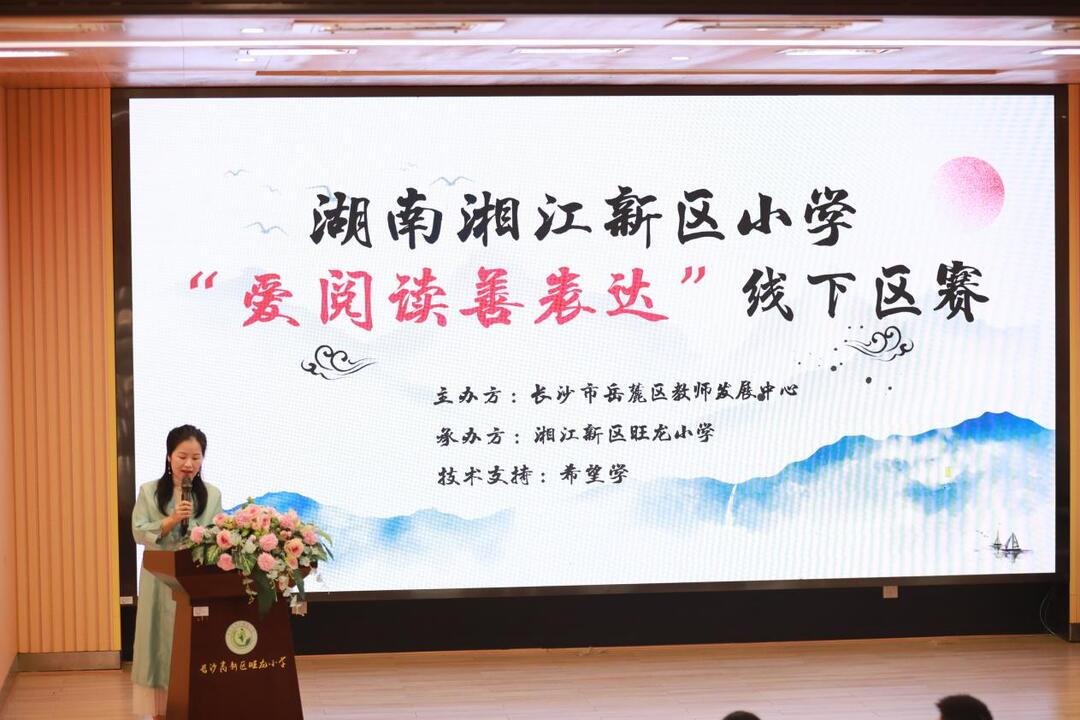 11月13日,由长沙市岳麓区教师发展中心主办的湖南湘江新区小学生“爱阅读 善表达”线下区赛在湖南湘江新区旺龙小学举行,通过前期全区线上区赛选拔的九支代表队齐聚一堂。本次活动由湖南湘江新区小学语文工作室首席名师张昂波老师主持,湖南湘江新区小学语文教研员熊社昕老师全程指导,全区各小学师生代表参与现场观摩交流。