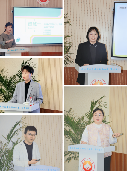 智慧分享,共生共长。枫树山小学名班主任莫晶老师主讲《用爱凝聚用心经营做智慧型班主任》。莫老师以多个生动的小故事为切入点,与老师们分享她的带班大智慧。青年骨干教师杨拓琼分享《自我成长与教研提升》。见招拆招,向内探求,是她的成长秘诀。副校长周丽珍作专题分享《追问,让课堂有思有味》,引领大家共同感受教育的真谛,揭示追问策略在课堂中的价值与魔力。校园名师蔡璐老师分享《语文核心素养下的低年级识字教学》。蔡老师的讲解引发全场教师对识字教学的深度思考。骨干教师蒋参老师带来《小学数学高效课堂构建》讲座。“恩威并施、言出必行、换位思考、投其所好”,他的教学理念为在座的老师带来全新启示。