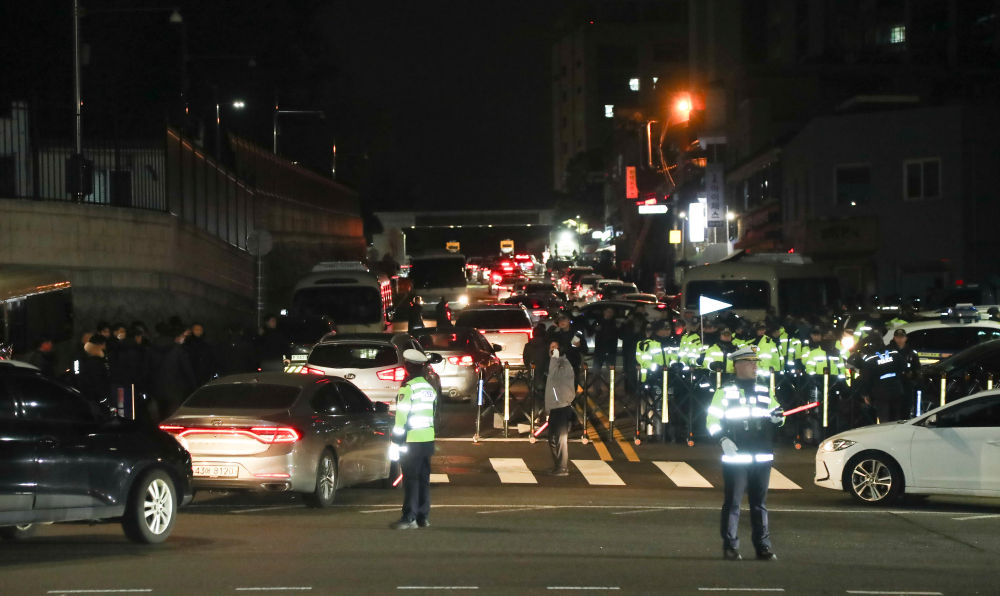 2024年12月4日凌晨,警察在韩国首尔的韩国总统府外戒备。新华社记者姚琪琳摄