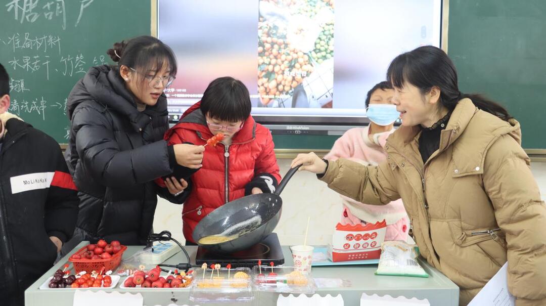 结合学校的资源和季节特色,劳技组开设了烹饪、植物养护、菜园种植等校本课程,教师们采用寓教于乐的教学方法,让学生通过实践活动进行学习。室外的菜园里,学生们亲手播种、浇水、施肥,见证着生命的成长,精心培育的蔬菜排列得井然有序、生机盎然,直观地呈现了他们一学期来的辛勤耕耘;室内则弥漫着甜蜜的气息,学生正在现场制作糖葫芦,从挑选食材到熬制糖浆,再到精心串起每一颗果实,祁特学子们灵巧地制作出一串又一串色泽鲜艳、味道诱人的冰糖葫芦,获得了在场评委们的一致好评。