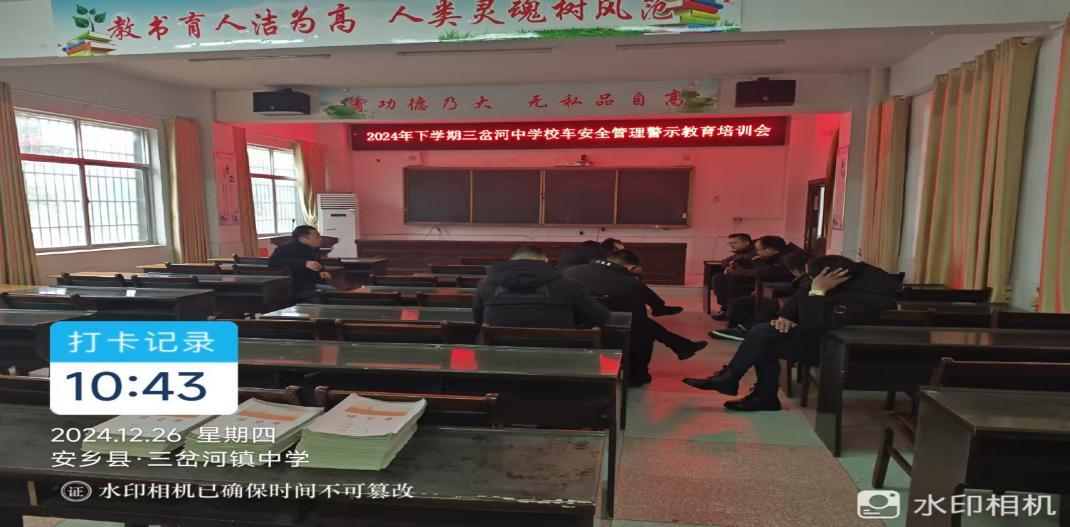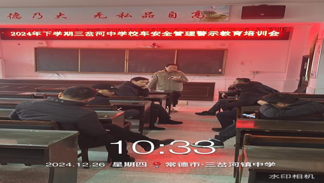 华声在线12月27日讯(通讯员 张小川 孟盼盼)为进一步加强校车安全管理,提升校车驾驶员及随车照管人员的安全意识和应急处理能力,12月26日,安乡县三岔河中学召开了“2024年下学期校车安全管理警示教育培训会”,参加此次会议的有学校德育安全处副校长陈震,德育安全处主任卜振华,校车管理员张小川以及该校所属7辆校车驾驶员。