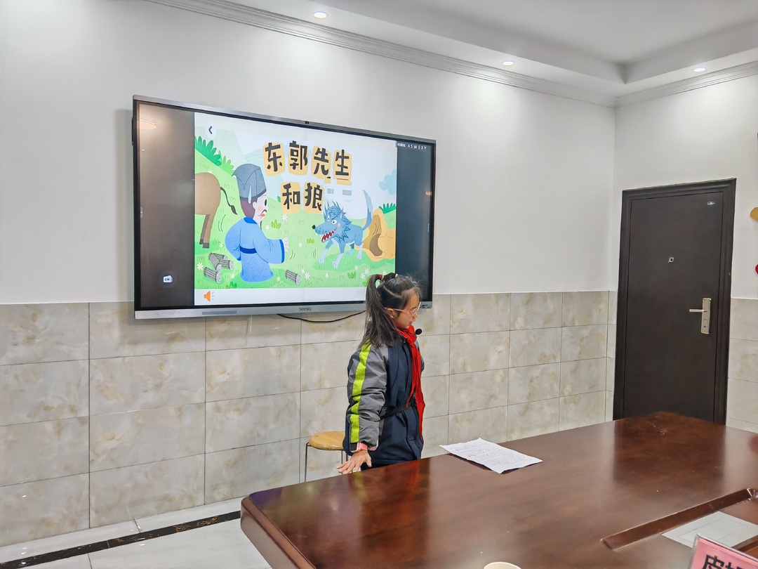 一至五年级的同学们为大家生动活泼地讲述了《胆小先生》《蚂蚁与蚂蚱》《东郭先生与狼》《小英雄雨来》的故事,分享了《有一粒米思念袁爷爷》《神话故事》书籍的新奇感受。