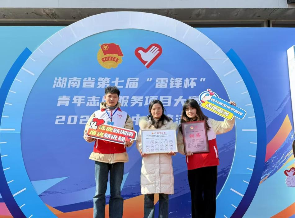 邓芳芳)12月17日,湖南省第七届“雷锋杯”青年志愿服务项目大赛2024年集中交流活动在长沙成功举办。经过省级初赛、决赛的评选,由大众传媒职业技术学院新闻与传播学院刘小华、邓芳芳老师指导的志愿服务项目——“健康守护者”青年助力“健康中国”,在决赛中斩获铜奖,取得学校在该赛事上历史最佳成绩。