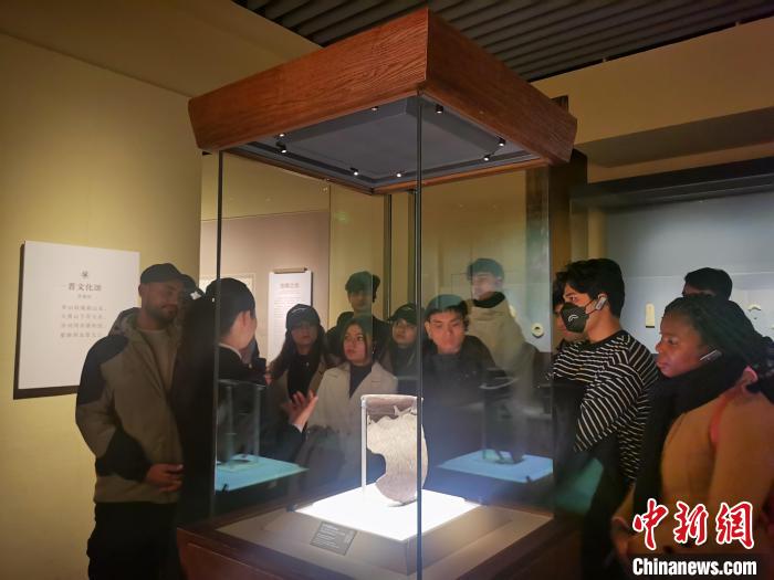 现场,在讲解员的带领下,留学生们不仅参观了展厅的文物,还体验投壶、木版年画拓印、文物盖章等活动,深入了解中国的悠久历史和灿烂文化。