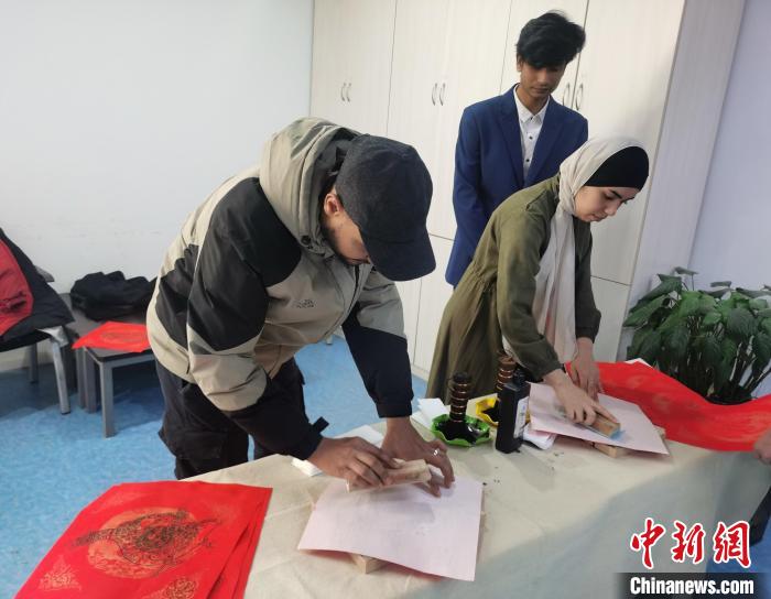 在孟加拉国留学生阿布看来,木版年画拓印是比较新的体验,借助这一独特的艺术形式,他能感受到蕴含其中的精湛技艺和独特审美。