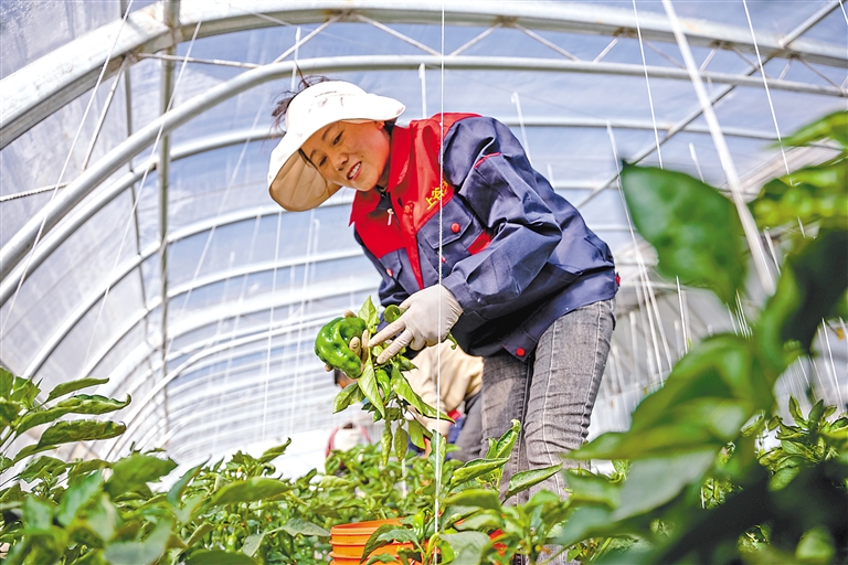 拉萨冬意渐浓,园区连片的温室大棚,在冬日暖阳下熠熠生辉,宛如一个个孕育希望的“菜篮子”,丰富冬日市场供应。走进蔬菜大棚,棚内暖意融融、绿意盎然,黄瓜、西红柿、青椒等各类蔬菜均已进入成熟期,长势十分喜人。眼下,正是大棚青椒采摘期,一垄垄、一株株青椒挂满枝头,工作人员三五成群忙着采摘,现场一派繁忙景象。“采摘青椒要向上折,这样才不会损伤植株。”在旦增曲扎的指导下,工作人员很快完成了采摘工作,打包、称重后,37袋青椒被整齐地摆放在一起,等待着装车发货。