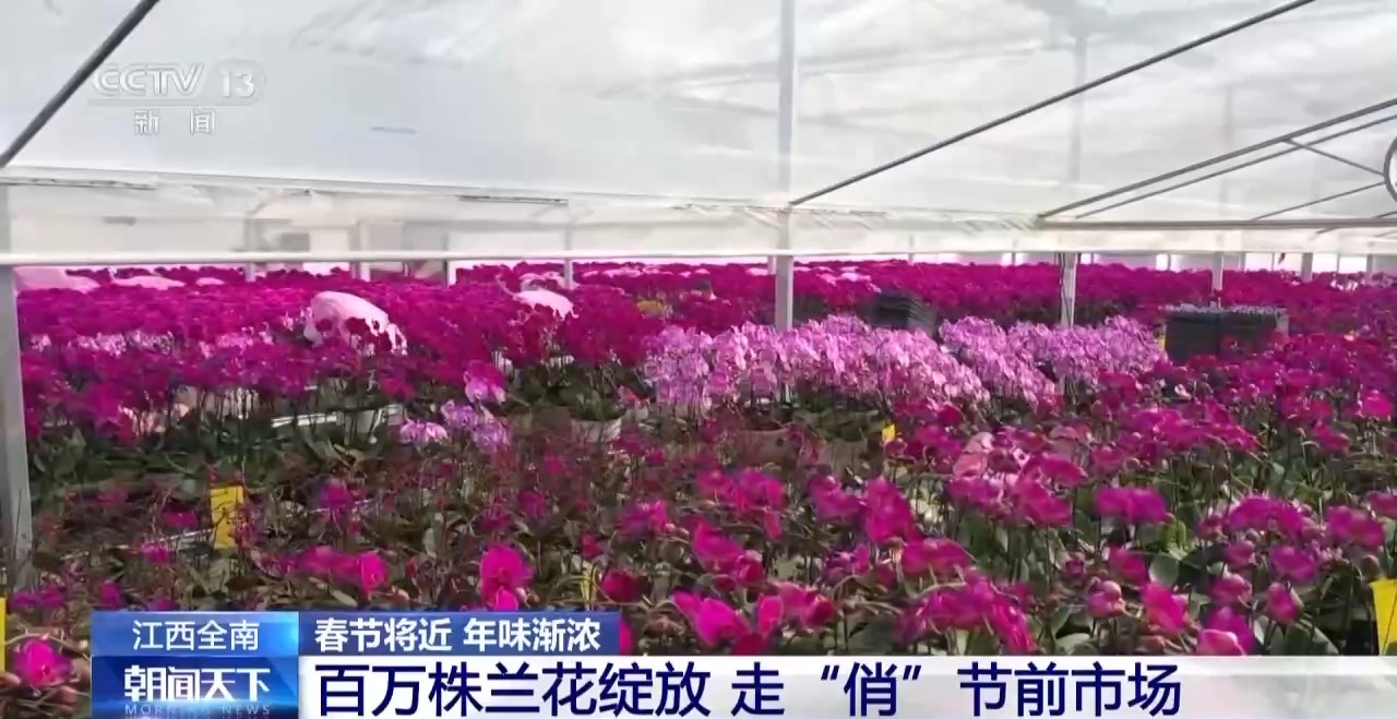 随着春节临近,花卉市场也逐渐升温。在江西赣州,全南县种植的百万株蝴蝶兰、国兰等花卉,竞相绽放、美不胜收,呈现产销两旺的态势。