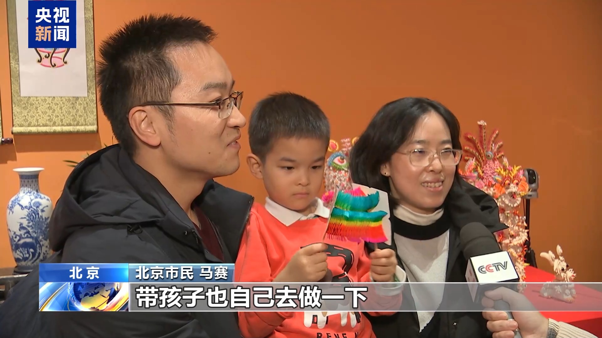 北京市民 马赛:每一个都很精美,我们想回家之后带孩子也去做一下,让小孩体验一下我们中国传统过年方式。