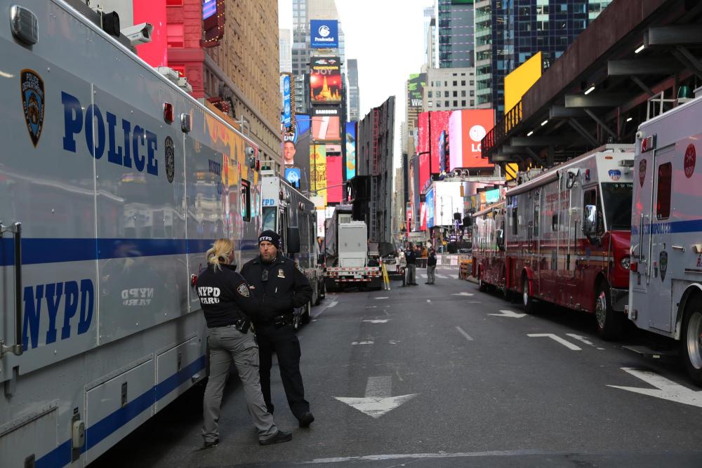 2024年12月31日,警察在美国纽约时报广场执勤。新华社记者刘亚南摄