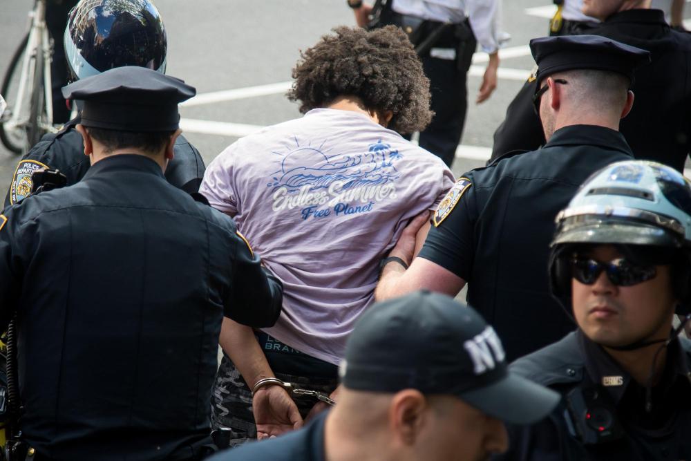 2023年5月6日,在美国纽约,警察带走抗议者。新华社发(郭克摄)