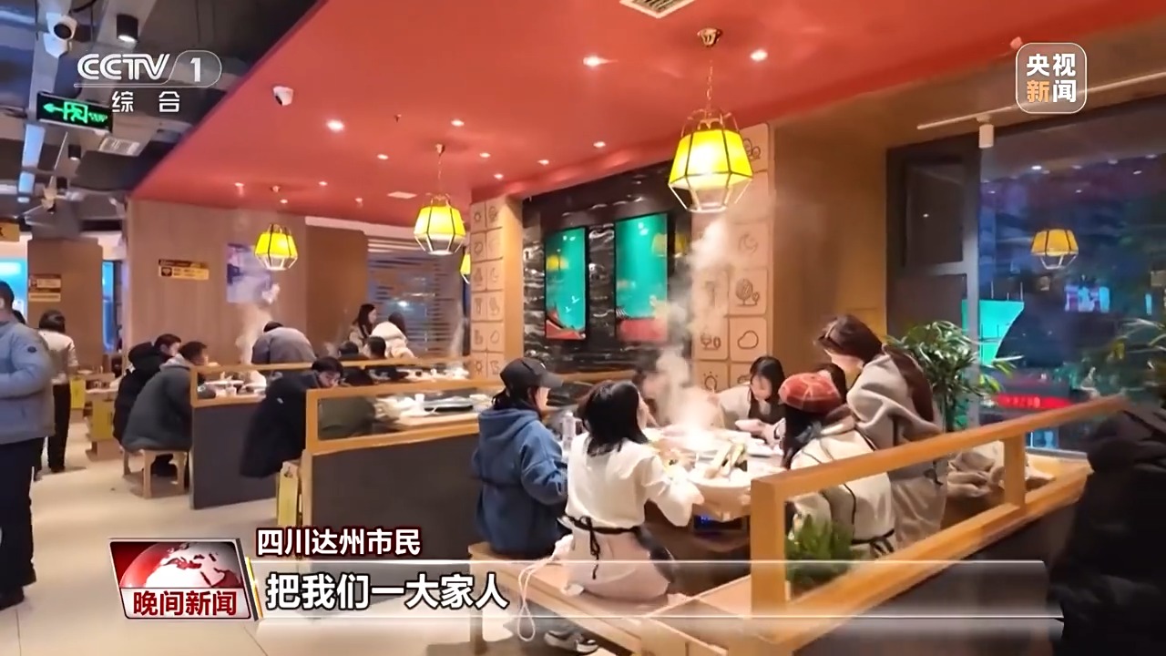 四川达州市民:今天我们几个同学在这里吃火锅,感觉这气氛很好,然后我准备今年过年,我们一大家人二十几个都来吃火锅。因为火锅它象征着红红火火、团团圆圆、热气腾腾。